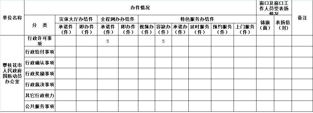 攀枝花市政务服务中心市国动办窗口2026年1月办件情况统计表