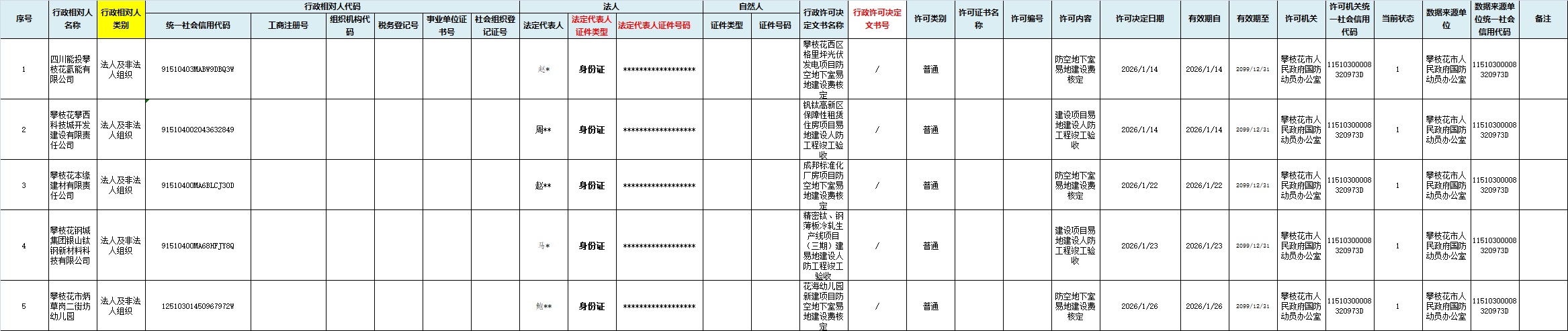 市国动办《行政许可信息归集公示填报表(2026年1月)》