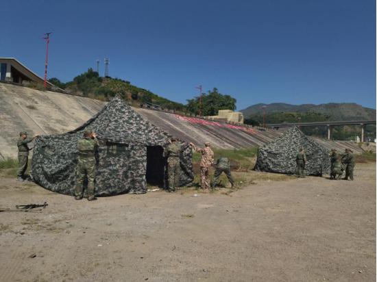 (图为:野外临时指挥所搭设训练)