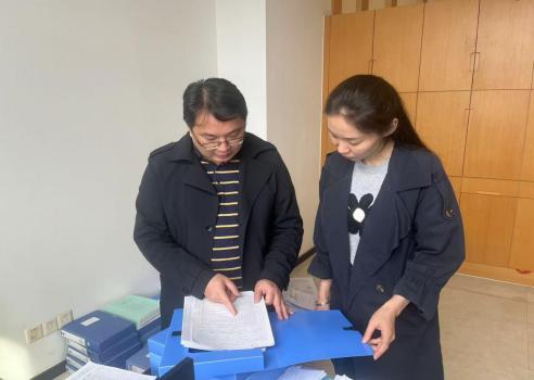 (图为:罗雪明副主任查看人防工程竣工验收资料)