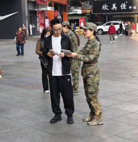 本次宣传活动坚持“线上+线下”融合发力,构建全方位、广覆盖的宣传格局。线下活动中,在人员密集的商超广场设立宣传咨询点,悬挂主题横幅、摆放宣传展板,图文并茂地向过往群众普及国防动员基础知识、国际民防日由来、防空警报识别、应急避险技巧、人防工程使用方法等知识。活动现场,工作人员耐心接待群众咨询,细致解答大家关于国防动员、防空防灾、应急处置的各类疑问,积极推广“花城国动”微信小程序应用,现场发放宣传手册、科普海报等资料1000余册,同时设置互动体验环节,引导群众近距离了解民防装备、学习简易自救互救技能,让群众在实践中掌握实用防护知识,动员大家增强国防观念,积极参与国防教育。